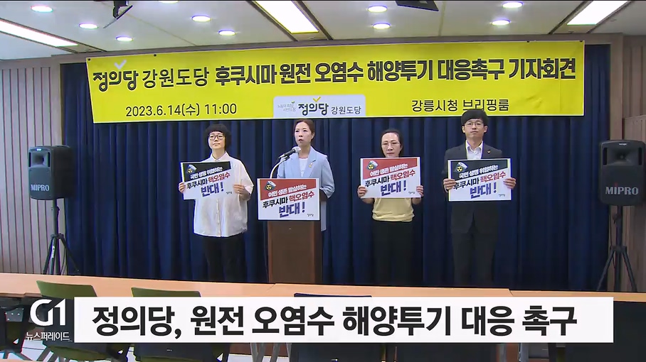 정의당 강원특별자치도당은 강릉시청에서 기자회견을 열고, 일본의 오염수 방류로 인한 피해가 자명한 상황인 만큼 강원특별자치도와 도의회 차원의 적극적인 대응이 필요하다고 촉구했습니다.