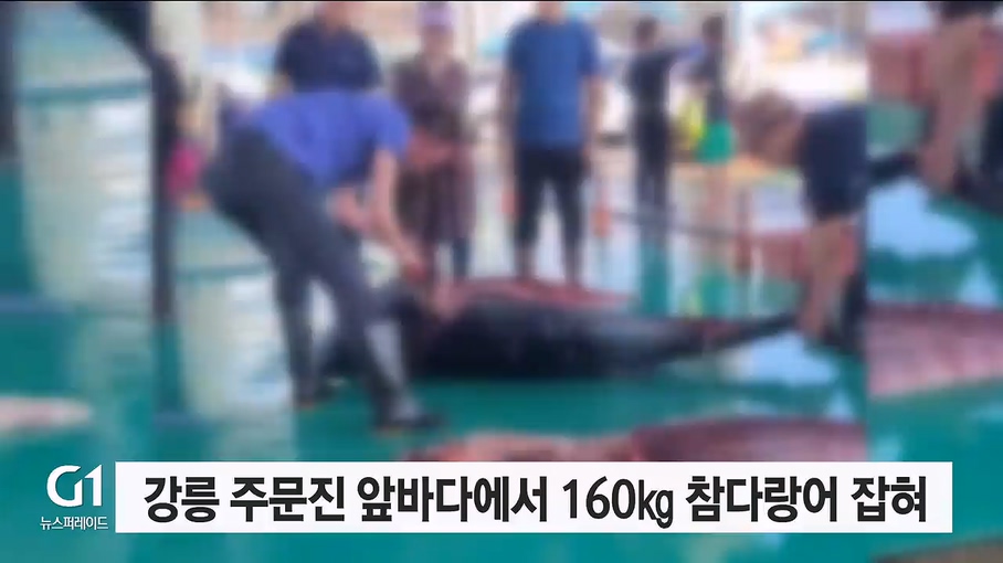 강릉수협에 따르면 오늘 오전 강릉 주문진 앞바다에서 160kg에 달하는 참치가 정치망 그물에 걸려 위판됐습니다.
