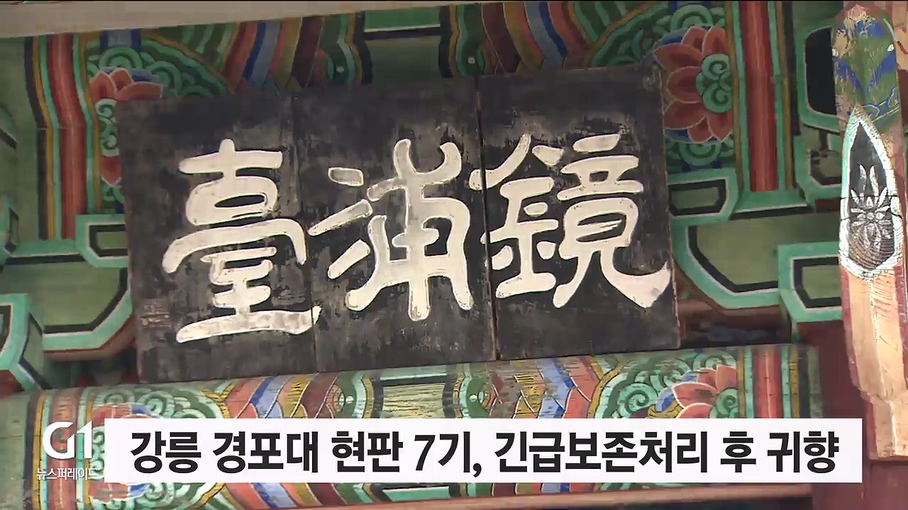 문화재청과 강릉시는 강릉 경포대 현판 7기에 대한 세척과 긴급보존처리를 마치고 기존 위치에 다시 복원했다고 밝혔습니다.
