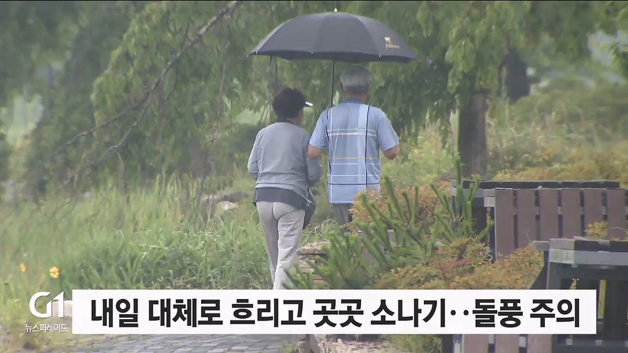 내일 대체로 흐리고 곳곳 소나기..돌풍 주의