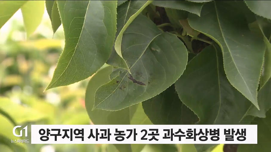 농촌진흥청은 양구 해안면의 사과 과수원 2곳에서 농장주의 의심 신고를 받고 확인한 결과, 0.8㏊ 규모에서 과수화상병이 나타났다고 밝혔습니다.