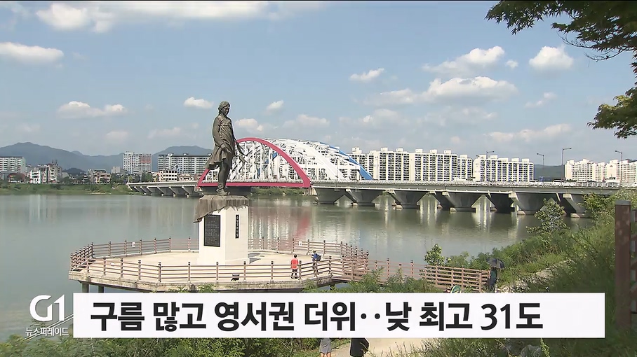 아침 최저기온은 16도에서 19도, 낮 최고기온은 영서권이 29도에서 31도, 영동권은 24도에서 27도의 분포를 보이겠습니다.