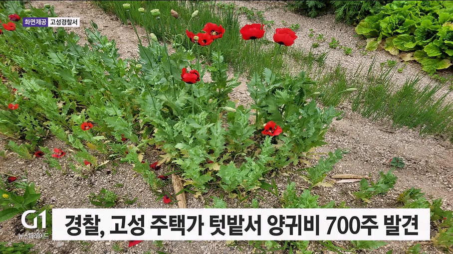 고성경찰서에 따르면, 경찰은 지난 20일 토성면 성천리 한 주택가 텃밭에서 80대 A씨가 기르던 양귀비 700주를 수거했습니다.