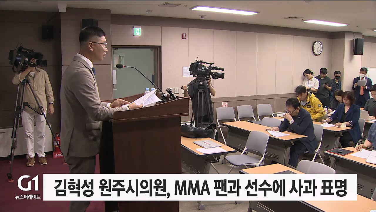 원주시의회 정례회 행정 사무감사 중 MMA는 스포츠가 아니다라는 발언을 통해 논란을 빚었던 김혁성 원주시의원이 MMA 팬과 선수들에게 사과를 표명했습니다.