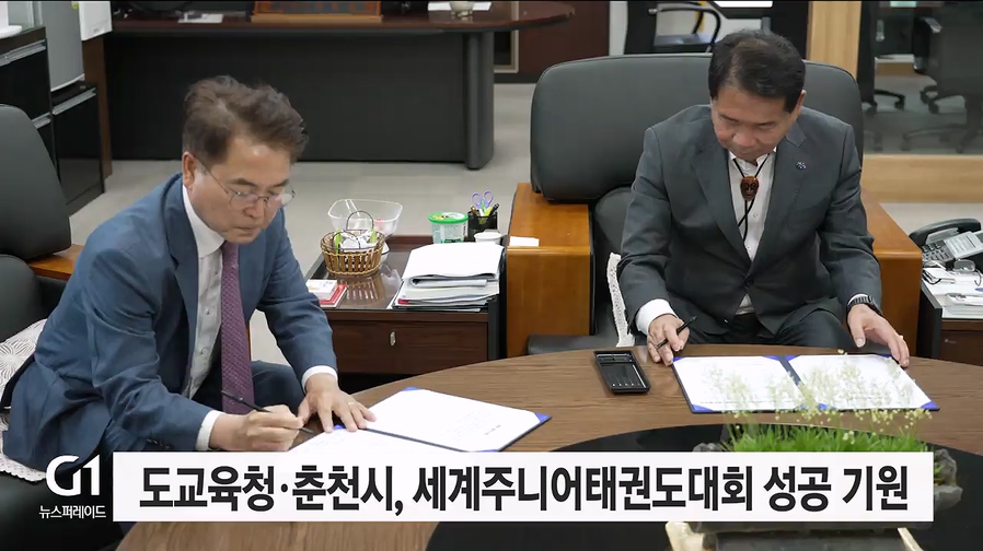 두 기관은 오늘(11일) 업무협약을 맺고 내년 9월 춘천 호반체육관에서 개최되는 '세계주니어태권도 선수권대회' 참가국 확대를 위한 행재정적 지원과 홍보를 약속했습니다.