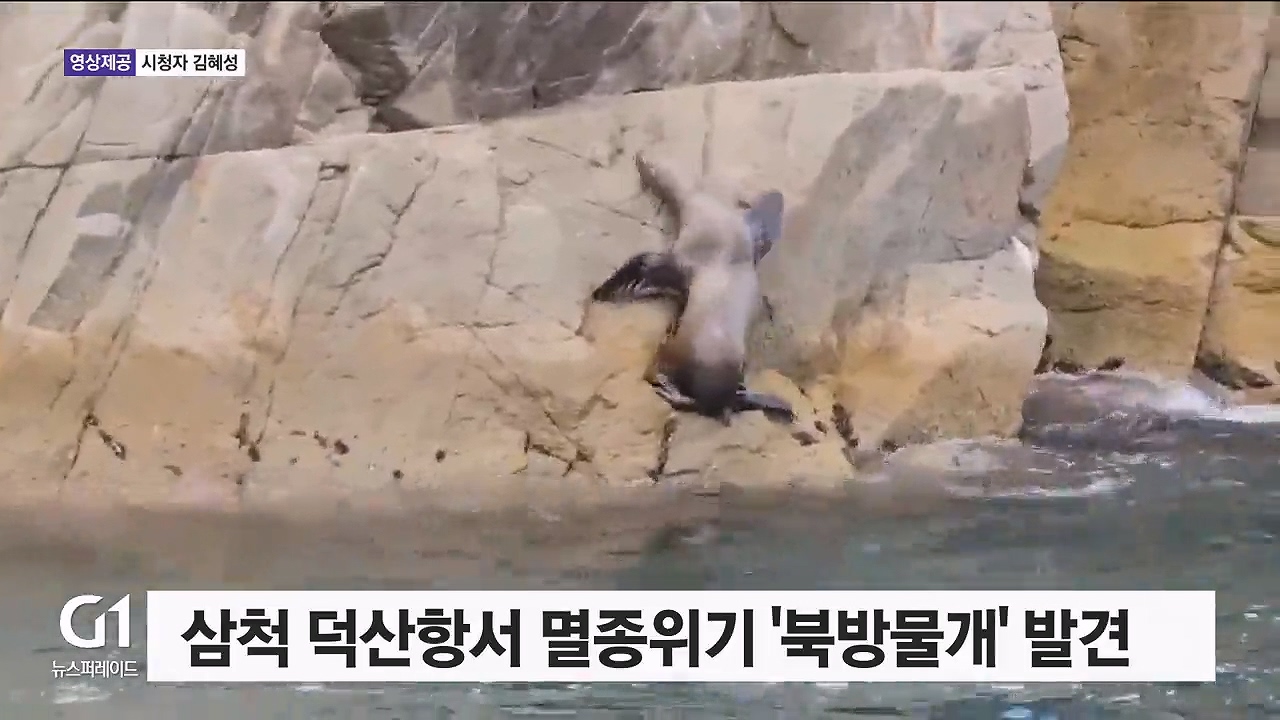 오늘(25일) 오전 10시쯤 삼척시 덕산항 인근 갯바위에서 물개로 추정되는 해양포유류가 발견됐습니다.