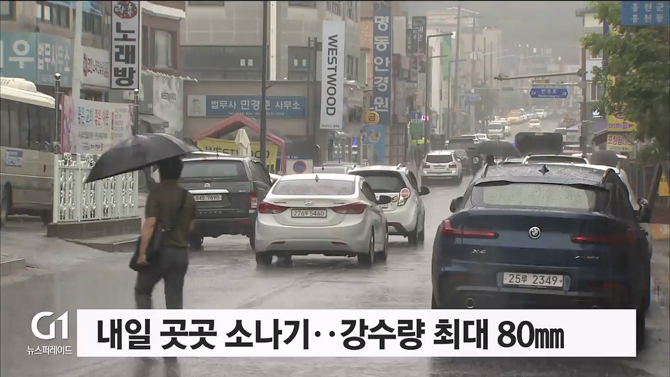 내일 강원자치도는 대체로 흐린 가운데 도내 곳곳에서 소나기가 쏟아지겠습니다.