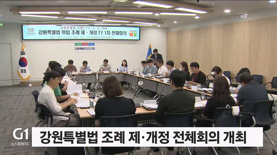강원특별자치도가 강원특별법 조례 제·개정 특별 전담반을 구성해 오늘(4일) 도의회 세미나실에서 1차 전체 회의를 열었습니다.