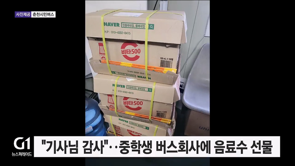 "기사님 감사" 버스회사에 음료 300병 선물한 중학생