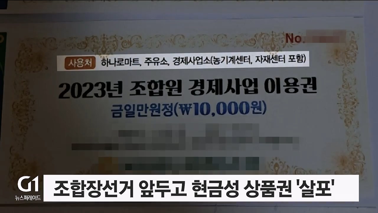 지난 1월 설 명절을 앞두고 도내 모 농협은 조합원 2천여 명에게 각각 10만 원 상당의 상품권을 돌렸습니다.
