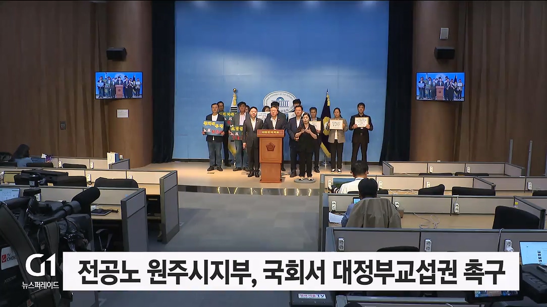 국민의힘 박정하 의원과 전공노 원주시지부 등은 오늘(12일) 국회 소통관에서 기자회견을 갖고, 민주노총과 전공노에 대정부교섭권 참여를 요구했습니다.