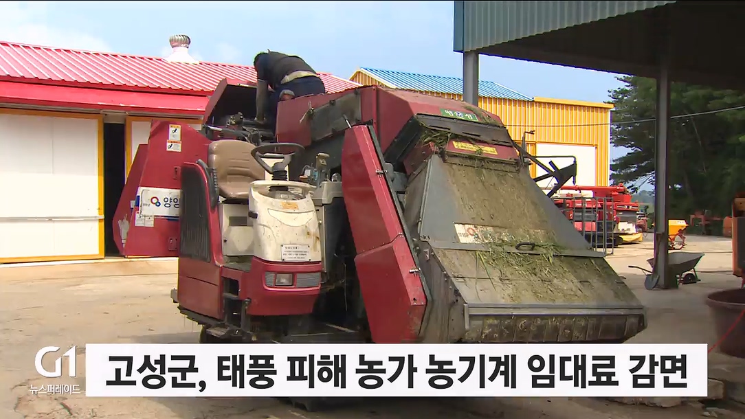 고성군이 태풍 '카눈' 피해를 입은 농가를 위해 농기계 임대 비용을 전액 감면합니다.