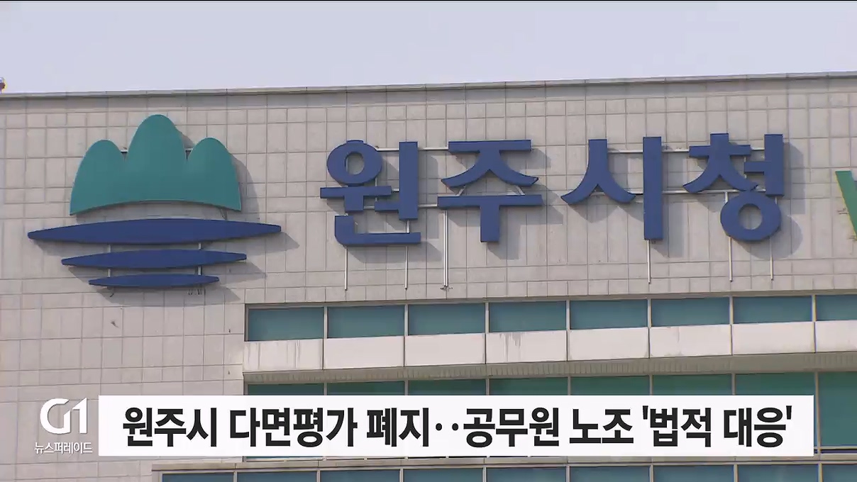 원주시가 4·5급 승진 인사 등에 적용하던 다면 평가를 폐지하기로 한 가운데 공무원 노조가 법적 대응을 예고했습니다.