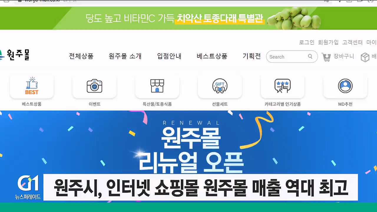 원주시 인터넷 쇼핑몰 원주몰 매출 역대 최고