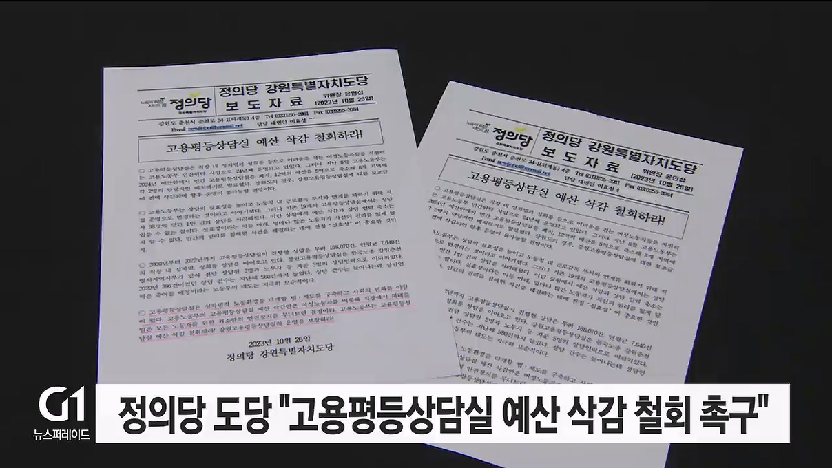 정의당 강원특별자치도당이 성희롱·성차별 피해 여성 노동자들을 돕는 고용평등 상담실의 예산 복구와 사업 지속을 촉구하고 나섰습니다.