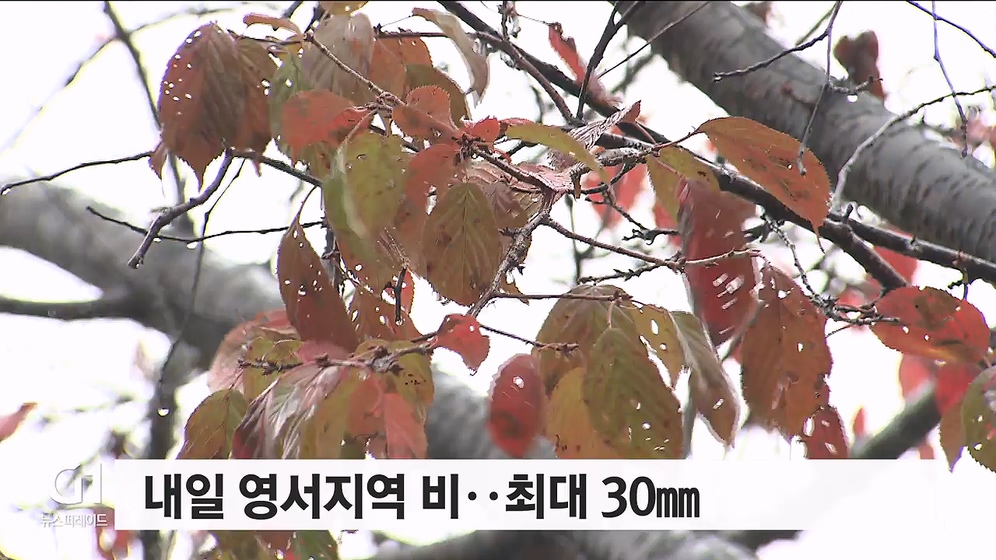 예상강수량은 영서 북부가 5mm에서 30mm, 영서 중·남부 5mm 내외입니다.