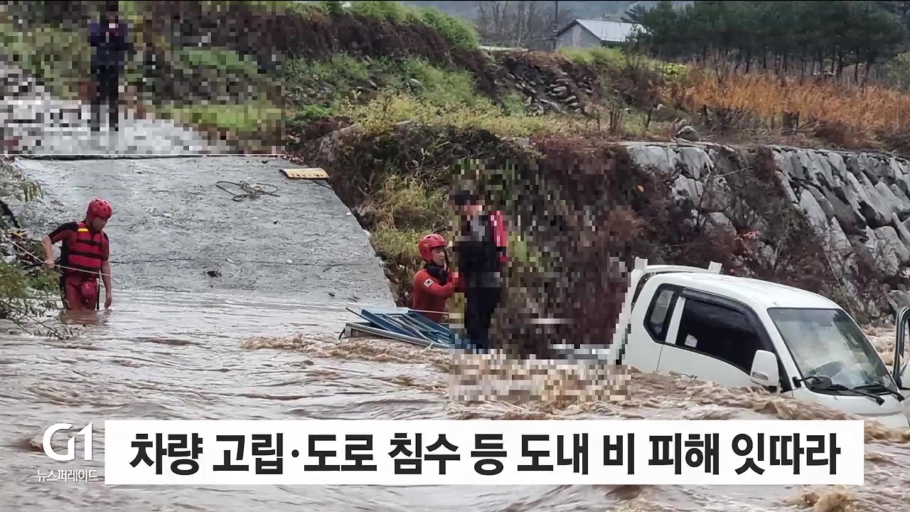차량 고립·도로 침수 등 도내 비 피해 잇따라