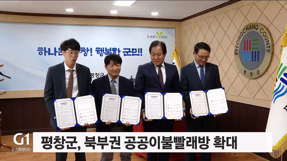평창군과 건강보험공단 서울강원지역본부, 한국 노인인력개발원 강원지사, 평창 시니어클럽은 오늘(7일) 평창군청에서 업무협약을 맺고 공공이불빨래방 사업을 확대하기로 했습니다.