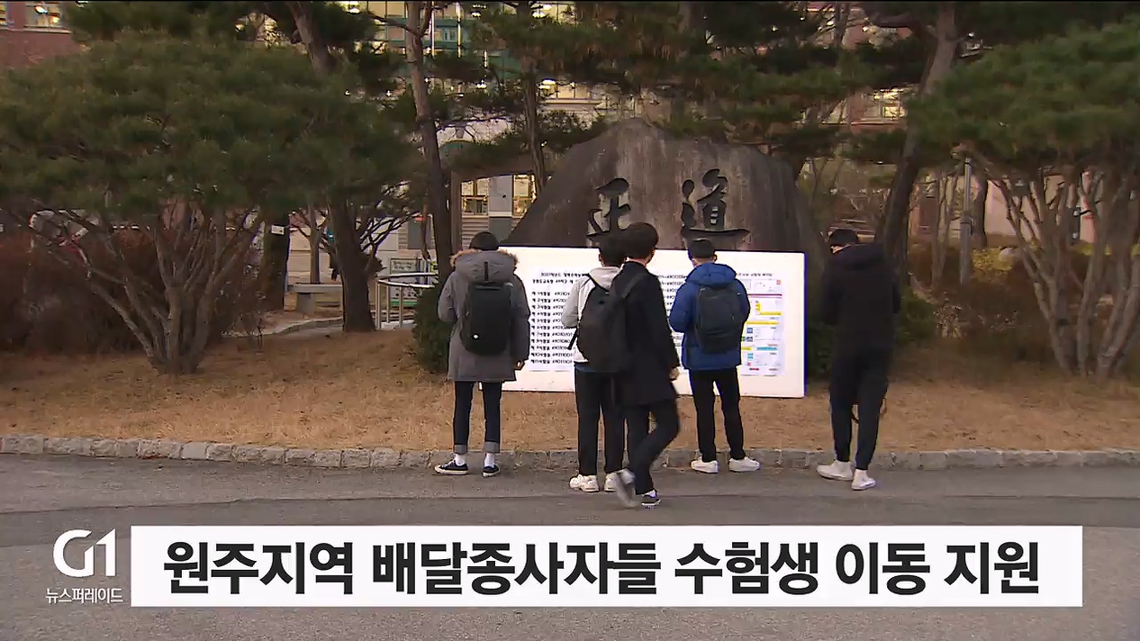 원주지역 배달종사자들이 대학수학능력시험 당일 수험생들을 위한 이동 지원에 나섭니다.