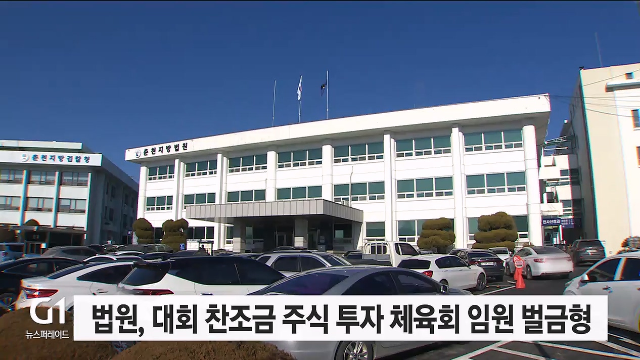 대회 찬조금을 주식에 투자한 춘천시체육회 회원종목단체 임원에게 항소심에서도 벌금형의 집행유예가 선고됐습니다.