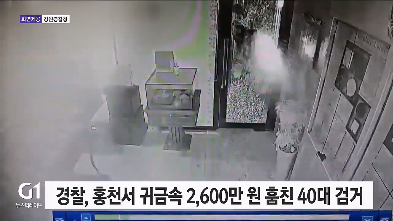 A씨는 지난 23일 오전 2시쯤 홍천의 한 금은방에서 모자와 마스크를 착용한 채 절단기로 출입문 유리창을 내리쳐 깨뜨린 후 침입해,