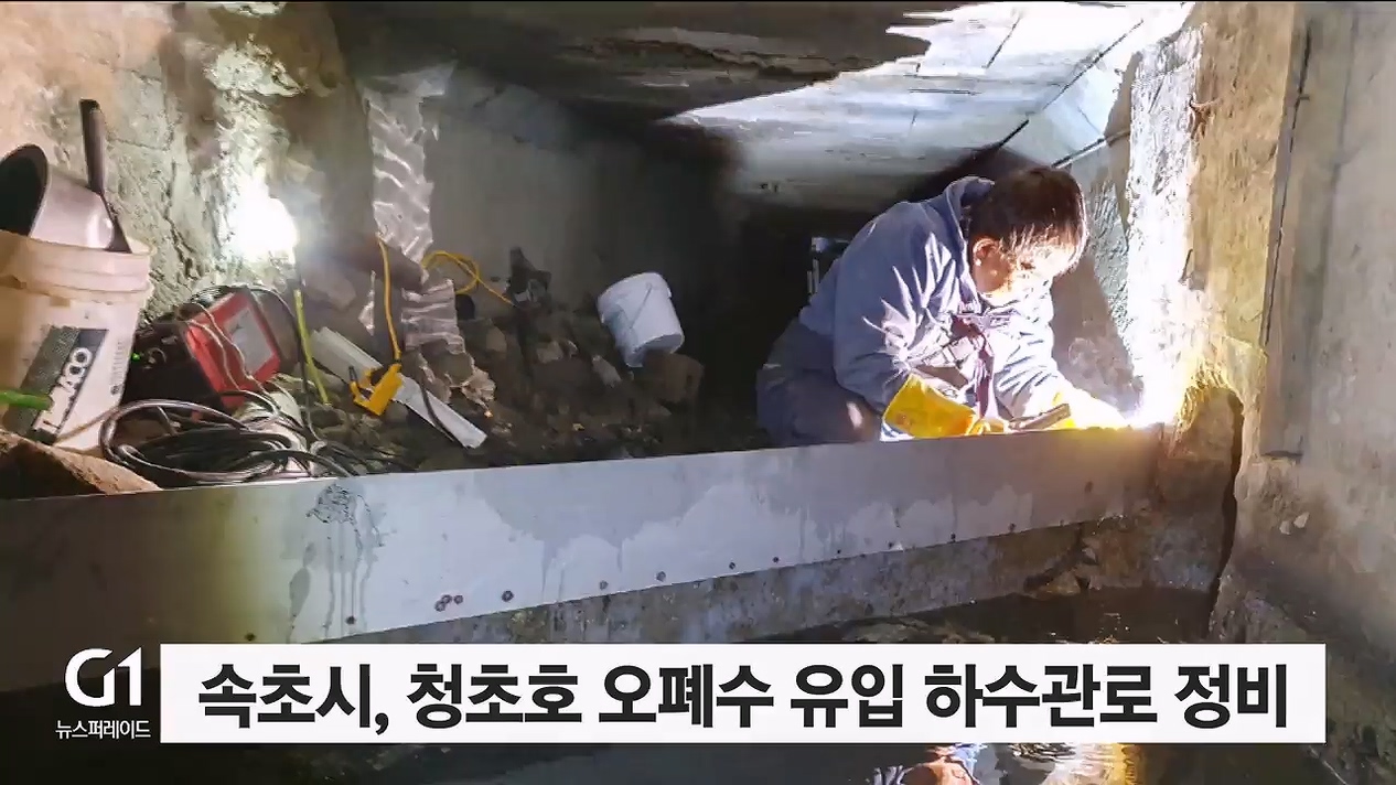 추가 예산을 편성해 우수토실 보강 작업 등 청초호 일대 하수관로 정비를 완료했다고 밝혔습니다.