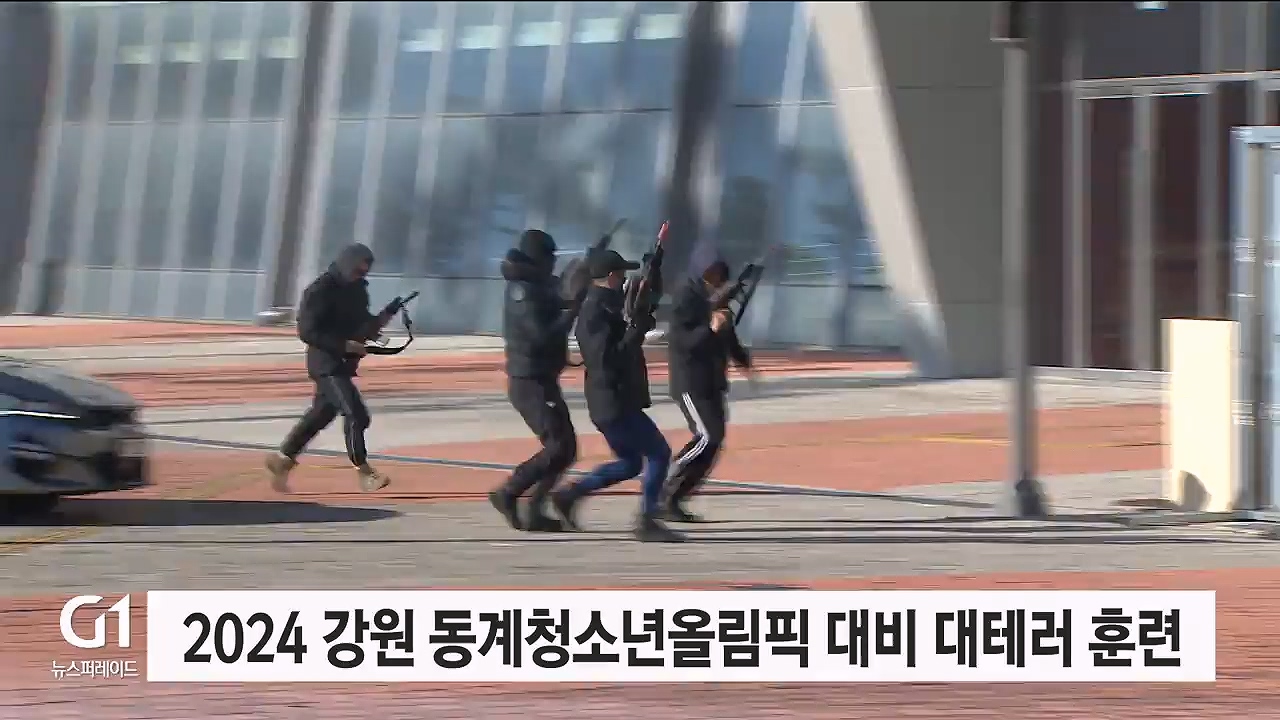 '2024 강원동계청소년올림픽대회' 기간 발생할 수 있는 긴급 상황에 대비하기 위한 대테러 종합 훈련이 강릉 스피드스케이팅경기장 일대에서 펼쳐졌습니다.