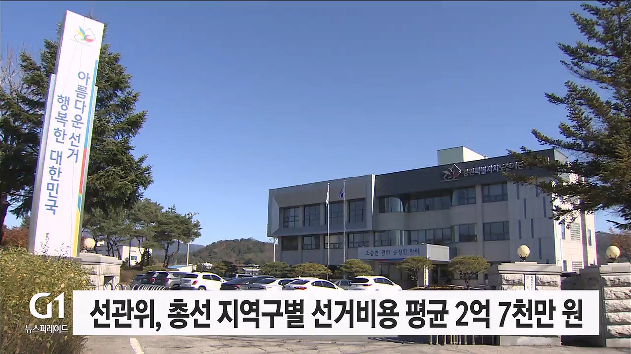 내년 총선 도내 지역구별 선거비용 평균 2억7천만 원