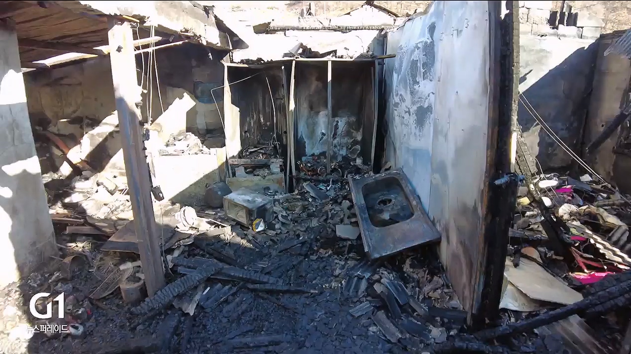 방이며 부엌이며 세간살이가 전부 잿더미가 됐습니다.