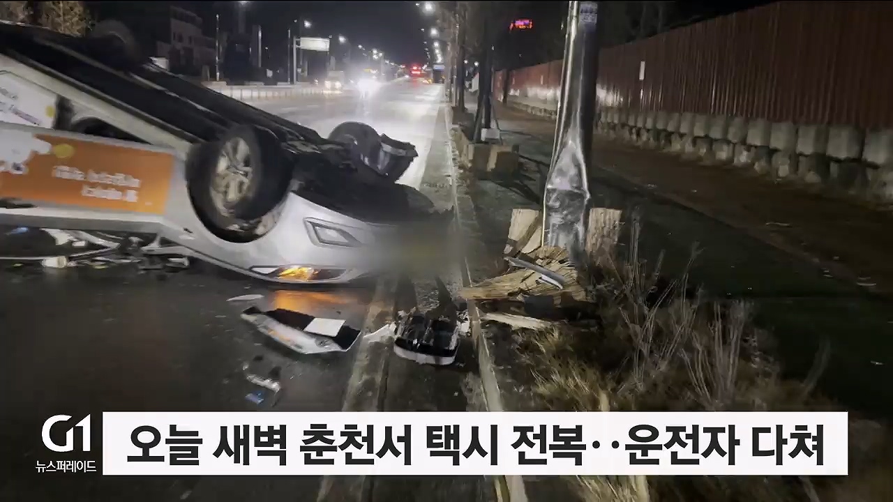 오늘 새벽 춘천서 택시 전복..운전자 다쳐