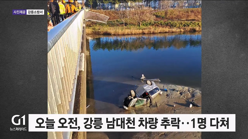 오늘 오전, 강릉 남대천 차량 추락..1명 다쳐