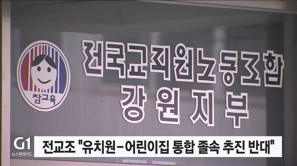 전교조 강원지부가 성명을 내고 도교육청의 유치원.어린이집 통합 추진을 반대한다고 밝혔습니다.