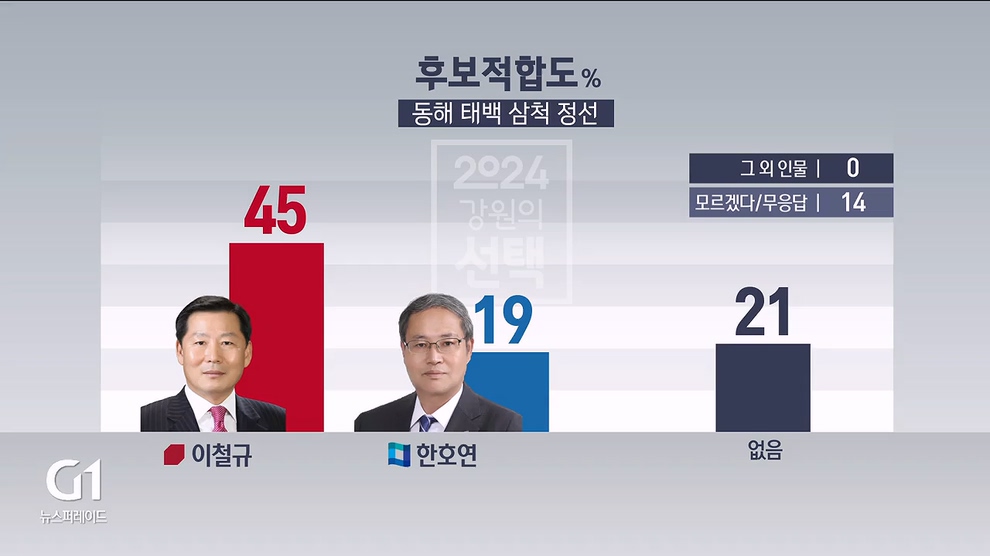 /내년 총선에서 동해·태백·삼척·정선 국회의원으로 누가 가장 적합한지 물었습니다.
