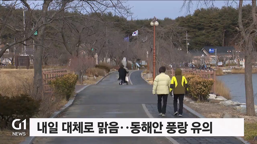 동해안을 중심으로 풍랑특보가 발효된 가운데, 내일(27일) 강원자치도는 구름 많다가 오전부터 차차 맑아지겠습니다.