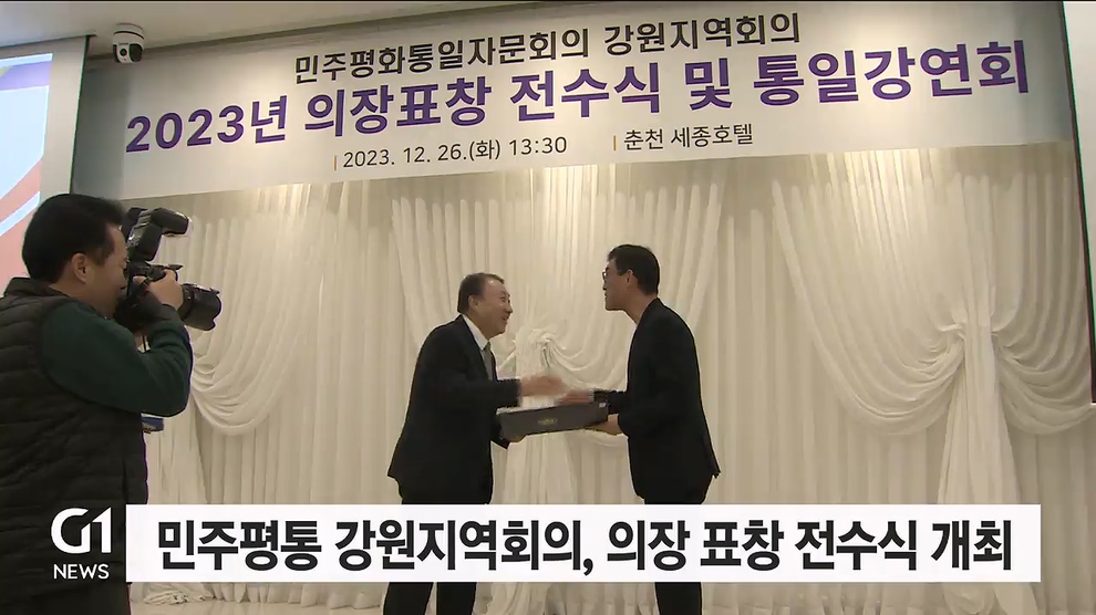 민주평화통일자문회의 강원지역회의는 오늘(26일) 춘천 세종호텔에서 2023년 강원지역 의장 표창 전수식과 통일강연회를 열었습니다.