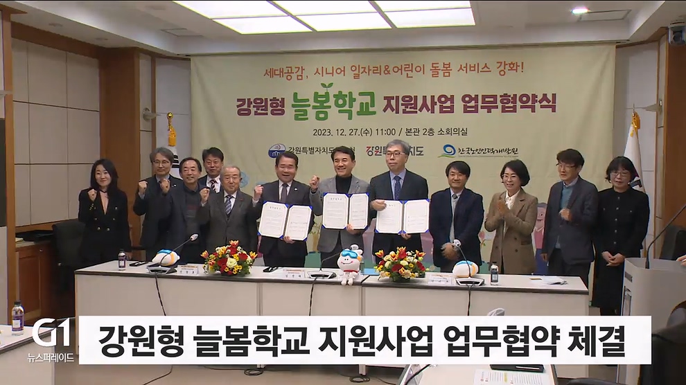 강원특별자치도와 강원특별자치도교육청, 한국노인인력개발원이 저출산 고령화 문제 해결을 위해 '강원형 늘봄학교 지원사업' 업무협약을 맺었습니다.