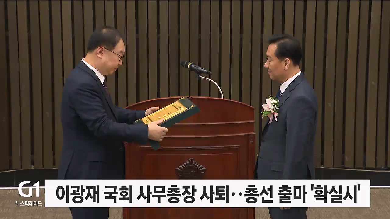 이광재 국회 사무총장이 내년 4월 총선을 앞두고 오늘(28일) 퇴임식을 갖고 공식 사퇴했습니다.