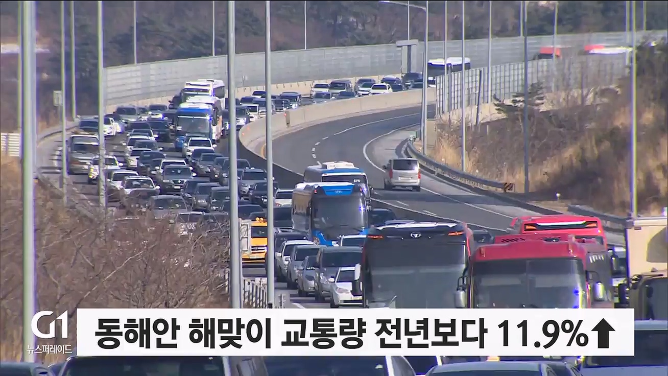올해 강원 동해안으로 가는 해맞이길은 전년도보다 교통량이 11.9% 가량 크게 늘면서 혼잡할 것으로 예상됩니다.