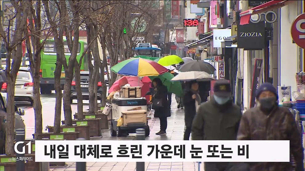 내일 강원자치도는 대체로 흐린 가운데 영동과 산간 지역을 중심으로 눈이나 비가 내리겠습니다.
