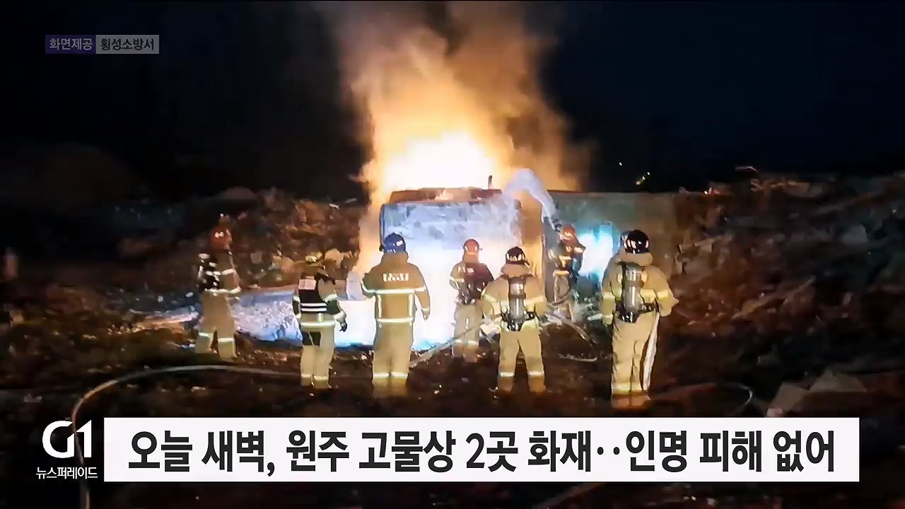 오늘 새벽 원주 고물상 2곳에서 화재..인명 피해 없어