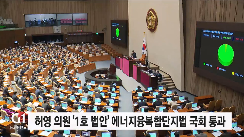 더불어민주당 허영 의원이 1호 법안으로 대표발의한 '에너지 융복합단지 특별법' 개정안이 국회 본회의를 통과했습니다.
