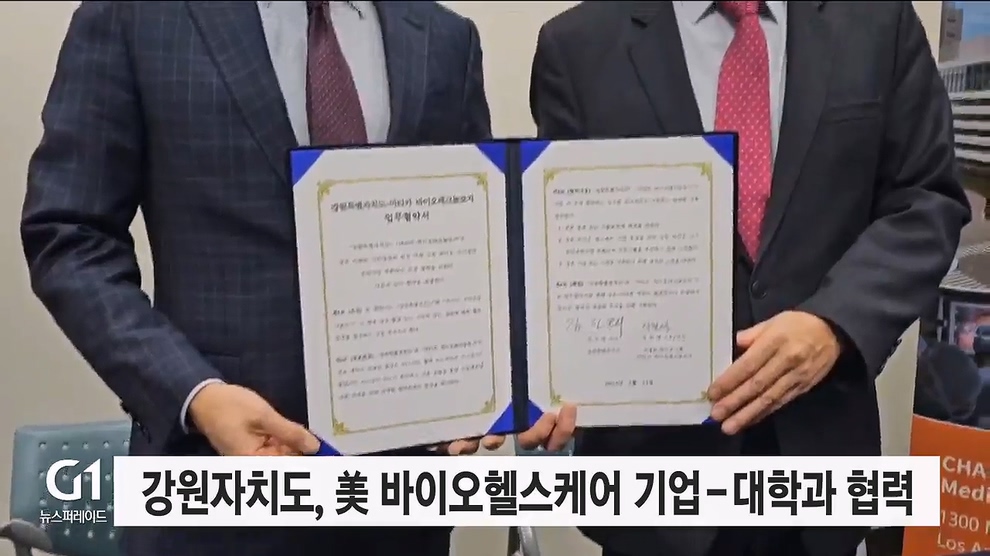 김 지사는 또 서던 캘리포니아대학에서 이 대학 연구팀과 강원디지털헬스케어 지원 기업 주식회사 오톰과도 협약을 맺고,