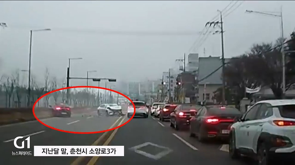 잠시 후 차량 한 대가 유턴을 시도하다,