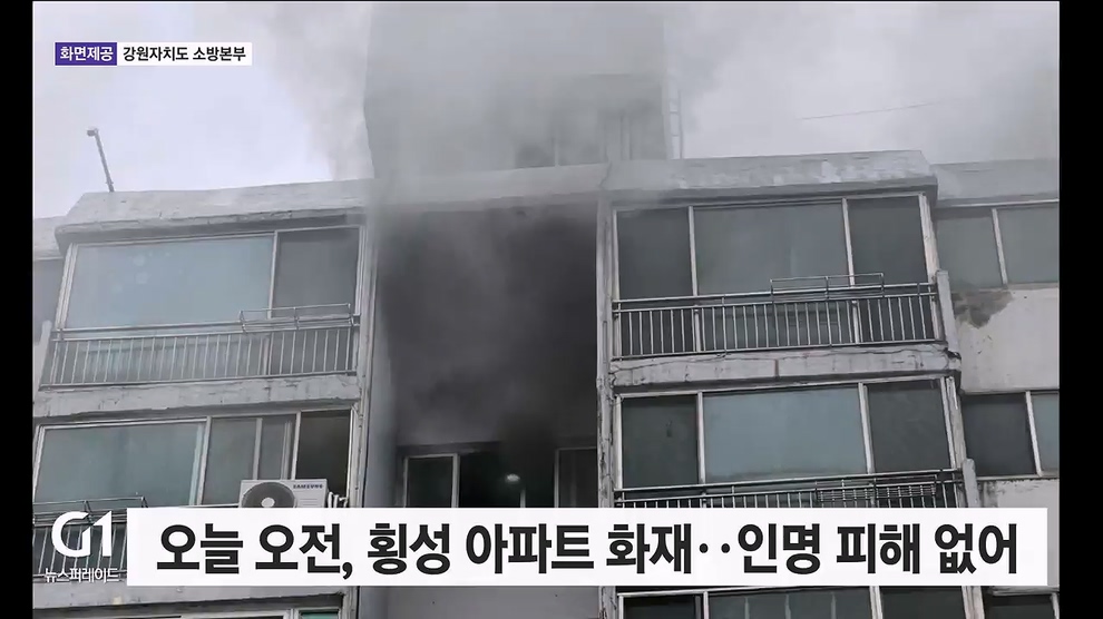 오늘 오전, 횡성 아파트 화재..인명 피해 없어