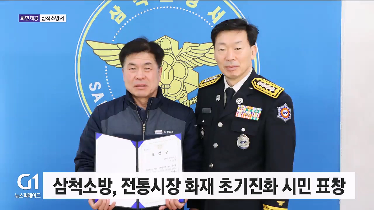 삼척소방서는 지난 12일 도계 전통시장 일대에서 발생한 차량 화재 당시 초기 화재진화에 나선 시민에게 표창을 수여했습니다.