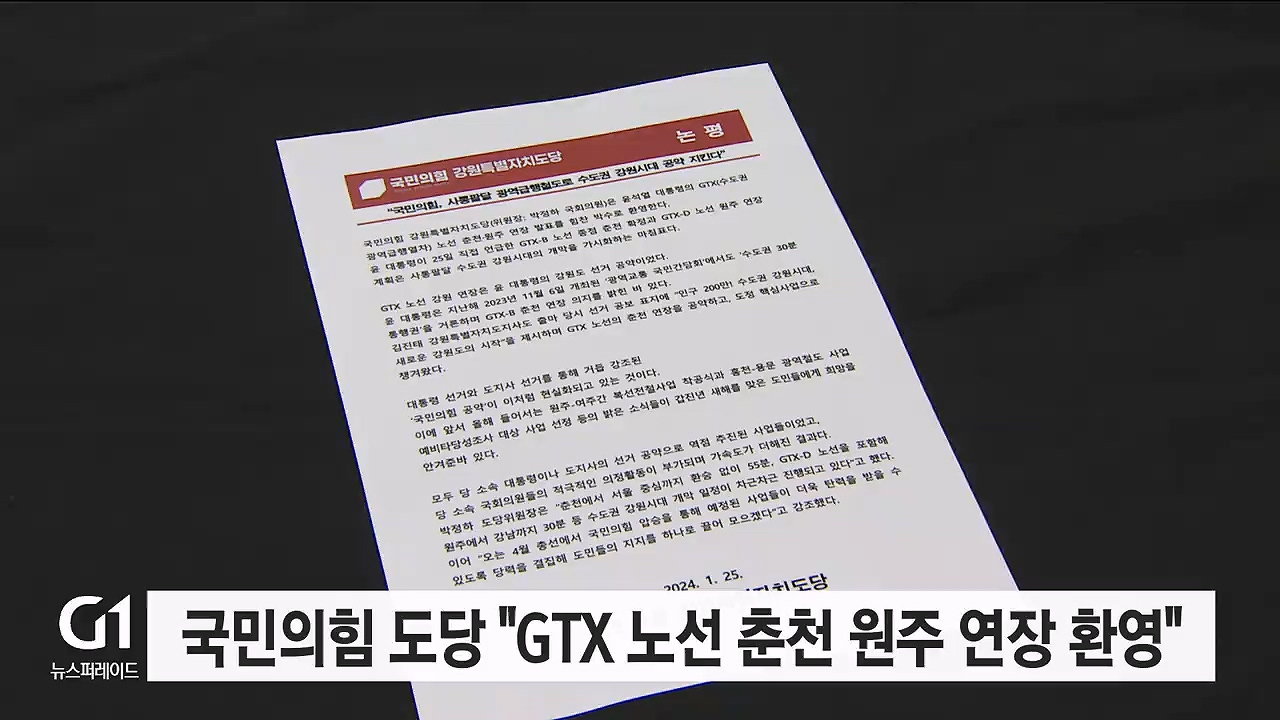 국민의힘 강원특별자치도당은 논평을 내고 윤석열 대통령의 GTX 노선 춘천원주 연장 발표를 환영했습니다.