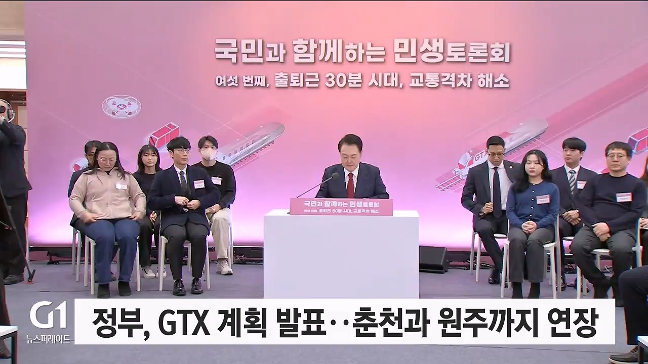 "(GTX)A·B·C 노선의 연장도 신속하게 추진할 것입니다. A노선은 평택, B노선은 춘천, C노선은 북쪽으로는 동두천, 남쪽으로는 천안, 아산까지 연장할 것입니다."