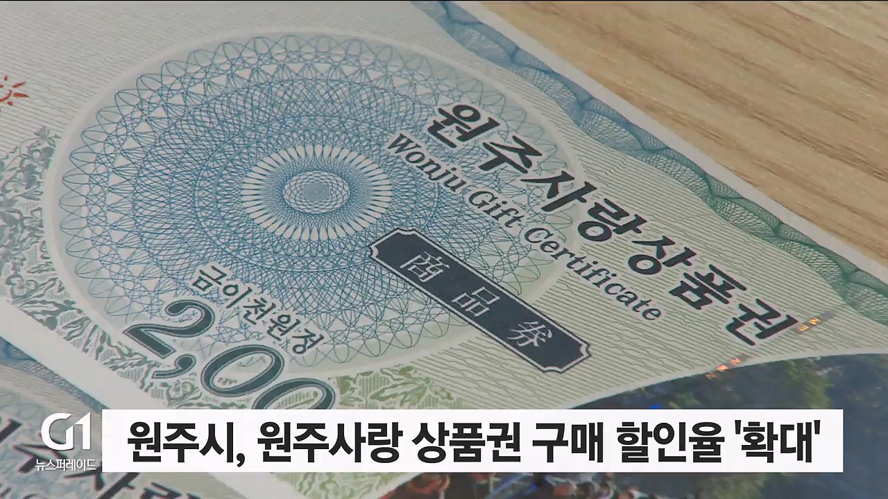 원주시가 다음 달부터 원주사랑 상품권 구매 할인율을 기존 6%에서 8%로 확대합니다.