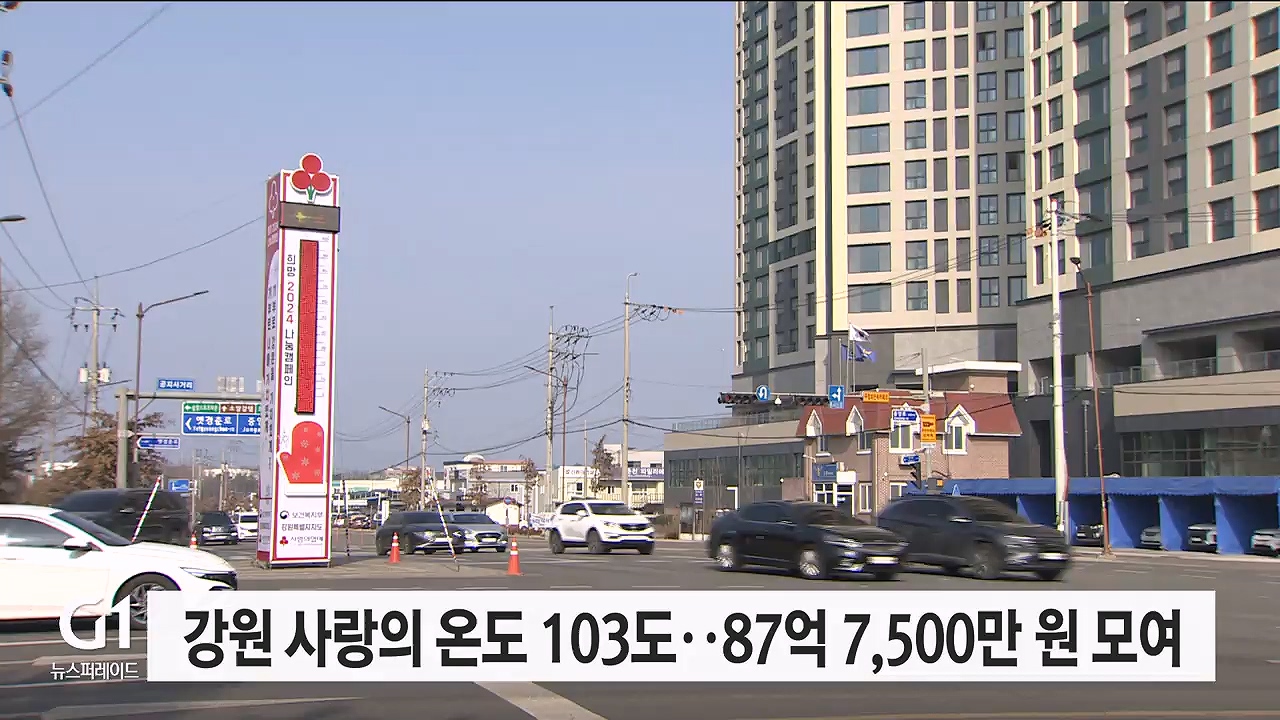 강원 사랑의 온도탑이 103도를 기록하며, 희망 2024 나눔 캠페인이 종료됐습니다.