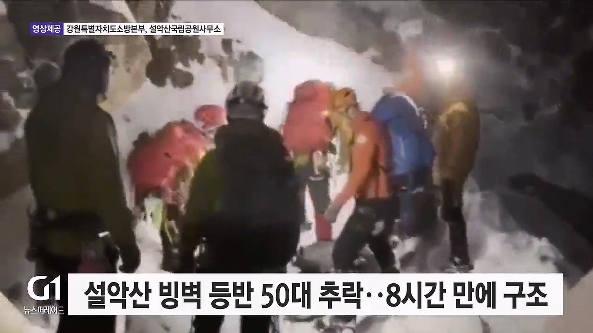 설악산 빙벽 등반 50대 추락..8시간 만에 구조